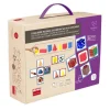 Γεωμετρικά σχήματα στην καθημερινότητα. Παιχνίδι που αποτελείται από 35 κάρτες με φωτογραφίες αντικειμένων ή σκηνών που έχουν σχέση με το περιβάλλον των παιδιών και 7 γεωμετρικά στερεά για να τα ταιριάζουν μεταξύ τους. Διαθέτει σύστημα αυτοδιόρθωσης. Σε συσκευασία πλαστικού παιχνιδόκουτου.