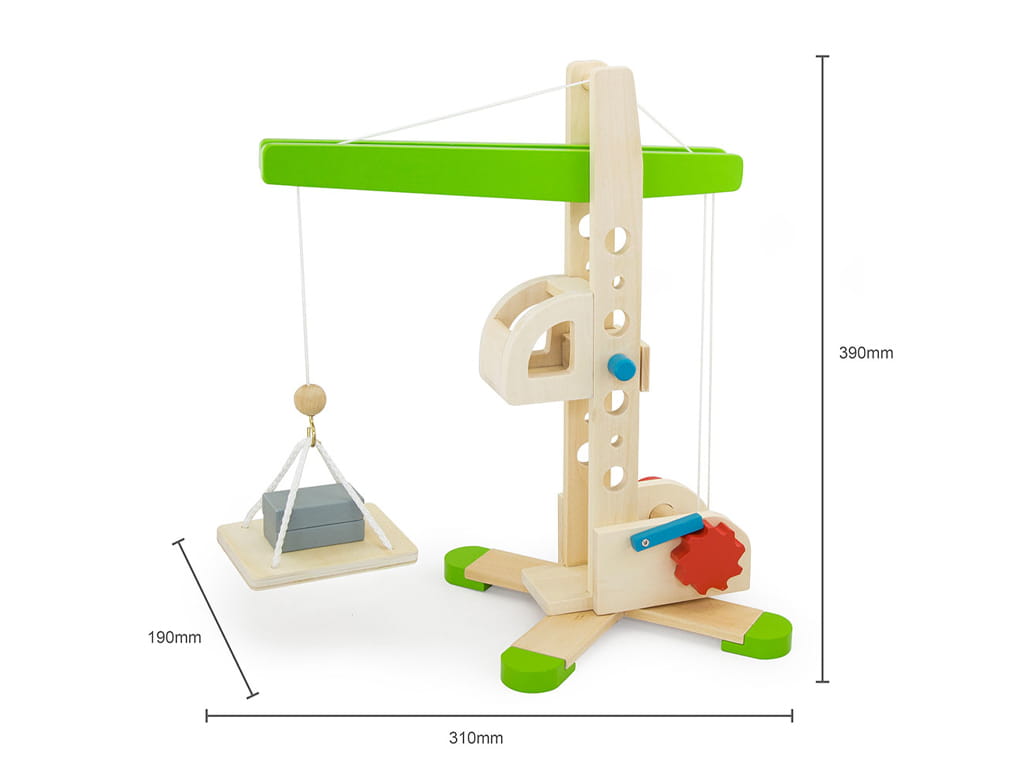Με διαστάσεις 31 x 39 x 19 εκ., ο γερανός αποτελεί ιδανική επιλογή για παιχνίδι στο σπίτι ή στον παιδικό σταθμό, ενισχύοντας τη φαντασία και τη δημιουργικότητα των παιδιών με ασφαλή και ποιοτικά υλικά.