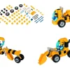 Τα θεματικά δημιουργικά δομικά στοιχεία μπορούν να διεγείρουν τη δημιουργικότητα και τη φαντασία των παιδιών και να κατασκευάσουν 10 διαφορετικά μοντέλα οχημάτων όπως, μπουλντόζα, απορριματοφόρο, εκχιονιστικό, μπετονιέρα, γερανό, οδοστρωτήρα, κλαρκ, εκσκαφέα, ριμουλκούμενο, γερανό πύργο ελέγχου. Ειδικά σχεδιασμένα με πατενταρισμένη άρθρωση που επιτρέπει κίνηση στον βραχίονα. Τα τουβλάκια είναι έτσι κατασκευασμένα που με ένα απλό γύρισμα ξεκουμπώνουν πανεύκολα. Αυτό όχι μόνο επιτρέπει στα παιδιά να μάθουν τις τρισδιάστατες κατασκευές αλλά βελτιώνει και τις γνωστικές και δημιουργικές ικανότητες του παιδιού.