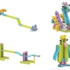 Χρησιμοποιώντας τα πολύχρωμα μεγάλα κομμάτια του, που είναι ιδανικά για μικρές ηλικίες, τα παιδιά θα αγαπήσουν τη δημιουργία κατασκευάζοντας 7 χαριτωμένα ζωάκια και 13 τσουλήθρες, ώστε συνδυάζοντας τα να φτιάξουν το δικό τους ονειρεμένο ζωολογικό κήπο. Το storybook που περιλαμβάνεται ξυπνάει την φαντασία των παιδιών και τα καθοδηγεί βήμα- βήμα για να κατασκευάσουν τα μοντέλα. Αυτό αναπτύσσει το φυσικό ενδιαφέρον τους για τη συναρμολόγηση, ενώ ξεδιπλώνουν τη φαντασία και τη δημιουργικότητά τους. Καθώς ακολουθούν την ιστορία του βιβλίου, τα παιδιά μπορούν να κατασκευάσουν, να διορθώσουν, να παίξουν με τα ζωάκια και να πειραματιστούν σε πολλούς τύπους κομματιών, ενώ ταυτόχρονα μαθαίνουν την απλή φυσική και τη μηχανική. Περιλαμβάνονται δύο μικρές μπάλες και μία μπάλα – κάψουλα για να χρησιμοποιήσετε στις τσουλήθρες. Βάλτε τη μικρή μπάλα ή άλλα υλικά μέσα στην μπάλα – κάψουλα για να δημιουργήσετε διαφορετικά βάρη και να ανακαλύψετε το μυστήριο της ταχύτητας και της βαρύτητας. Τεμάχια 58. Ηλικία: 3+