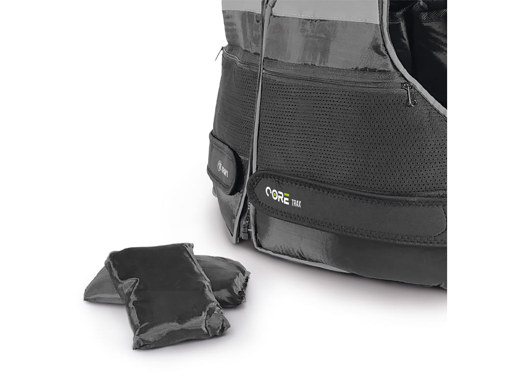 Τα βάρη είναι κατασκευασμένα από μαλακό υλικό, εξασφαλίζοντας άνεση και ασφάλεια κατά τη χρήση. Το γιλέκο διαθέτει δικτυωτές τσέπες στο στήθος με φερμουάρ για την ασφαλή αποθήκευση μικρών αντικειμένων.