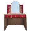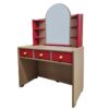 Κατασκευασμένη από συνθετικό ξύλο MDF με επένδυση οξιάς, λουστραρισμένη στο φυσικό χρώμα του ξύλου, με χρωματιστές λεπτομέρειες. Φέρει τρία συρταράκια, ραφάκια δεξιά και αριστερά του καθρέφτη και καθρέφτη άθραυστο ασφαλείας σε σχήμα οβάλ. Όλα του τα άκρα είναι στρογγυλεμένα και ακίνδυνα για τα παιδιά. Τα χρώματα και τα βερνίκια που χρησιμοποιούνται νερού. Διαστάσεις: 73 x 40 εκατοστά. Ύψος: 110 εκατοστά. Κατασκευασμένο σύμφωνα με τα πρότυπα: ΕΝ 71-1:2014, ΕΝ 71-2:2011+Α1:2014 και ΕΝ 71-3:2013+Α1:2014. Συνοδεύεται από Έκθεση Δοκιμών.