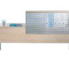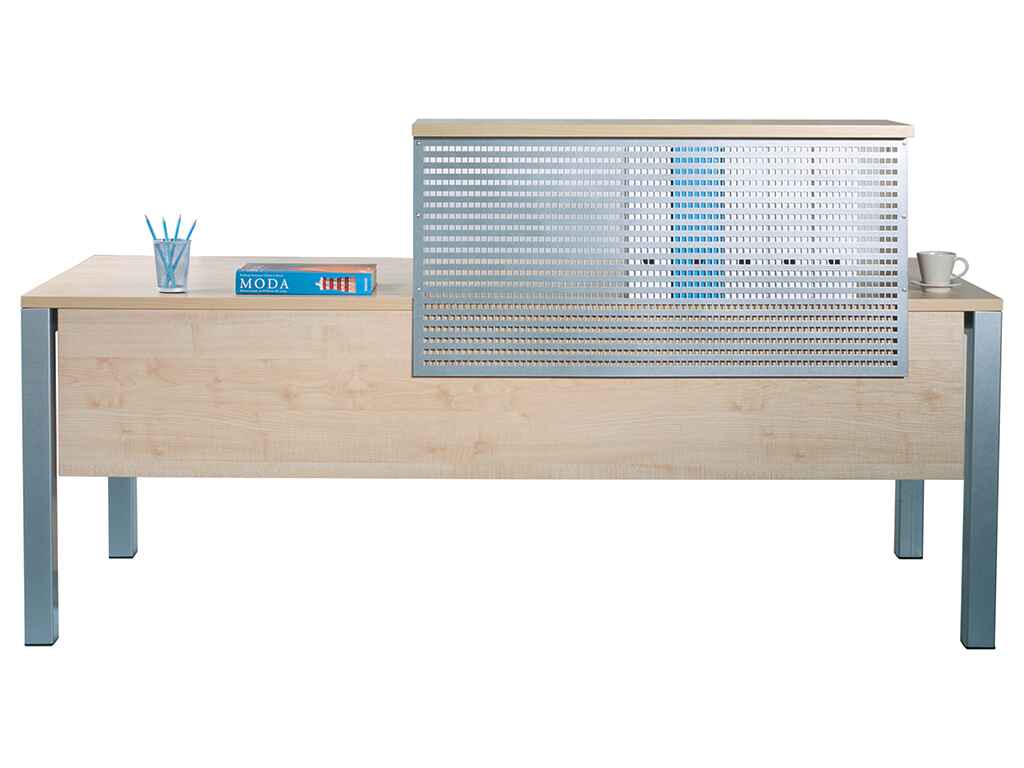Από μοριοσανίδα με επένδυση μελαμίνης, μεταλλικά πόδια τετράγωνης διατομής και μεταλλική διάτρητη πλάτη ρεσεψιόν. Μήκος: 180 εκ.