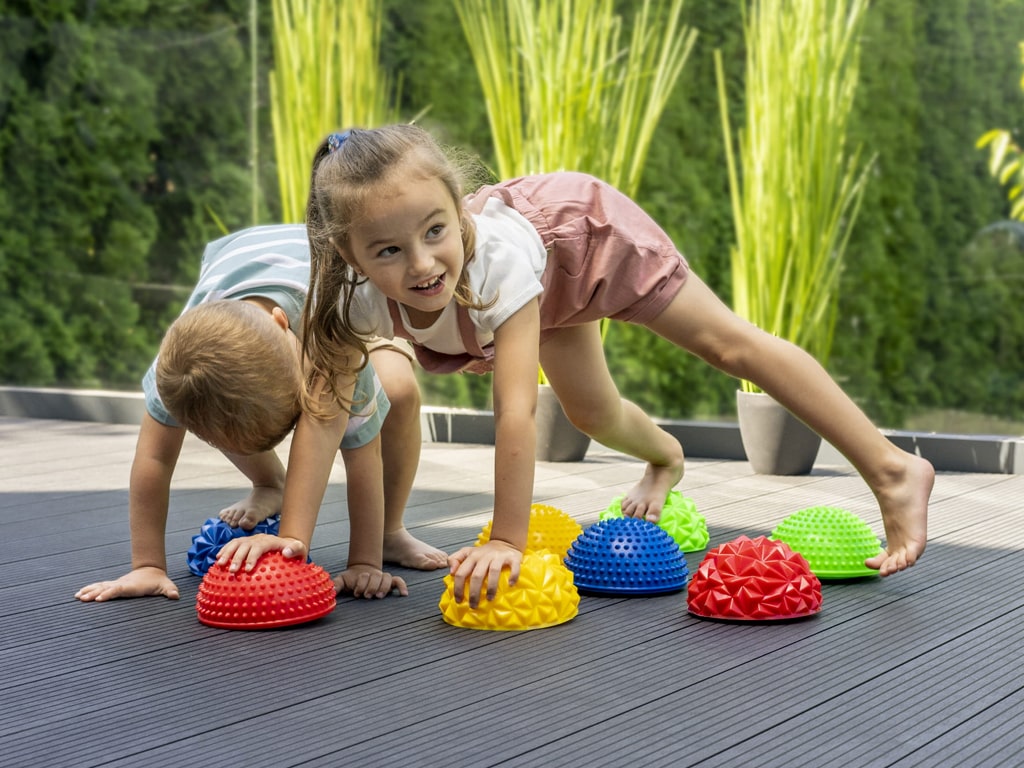 Τα Ημισφαίρια ισορροπίας Sensory είναι ένα εξαιρετικό εργαλείο για εκπαίδευση ισορροπίας, διόρθωση στάσης σώματος και μασάζ ποδιών, ιδανικά τόσο για παιδιά όσο και για ενήλικες. Η επιφάνειά τους διαθέτει ειδικές κωνικές προεξοχές που ενεργοποιούν τους αισθητηριακούς υποδοχείς, βελτιώνουν την κυκλοφορία του αίματος και χαλαρώνουν τους μυς.