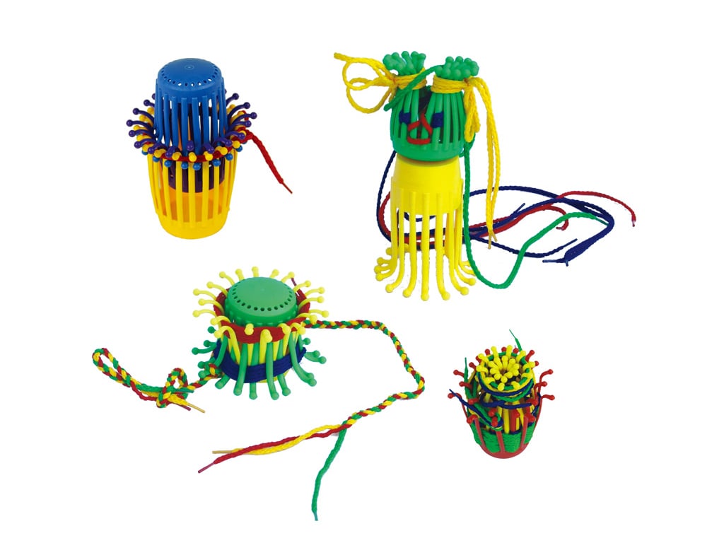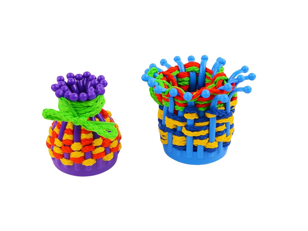 Τα παιδιά μπορούν να περάσουν τα κορδόνια μέσα από τις τρύπες των καλαθιών, δημιουργώντας μοτίβα, σχήματα ή απλώς πειραματιζόμενα με διαφορετικούς τρόπους δεσίματος. Η δραστηριότητα αυτή καλλιεργεί την παρατηρητικότητα και ενισχύει τον οπτικοκινητικό συντονισμό. Παράλληλα, είναι εξαιρετική άσκηση για την εκγύμναση των μικρών μυών των δακτύλων, βοηθώντας στην προετοιμασία για τη γραφή.