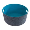 Kαλάθι από τσόχα σε γκρι/τιρκουάζ με χερούλια. Κατάλληλο για την αποθήκευση οποιωνδήποτε μικροαντικειμένων, όπως υλικά γραφείου, παιχνίδια, υλικά χειροτεχνίας κ.λπ.
