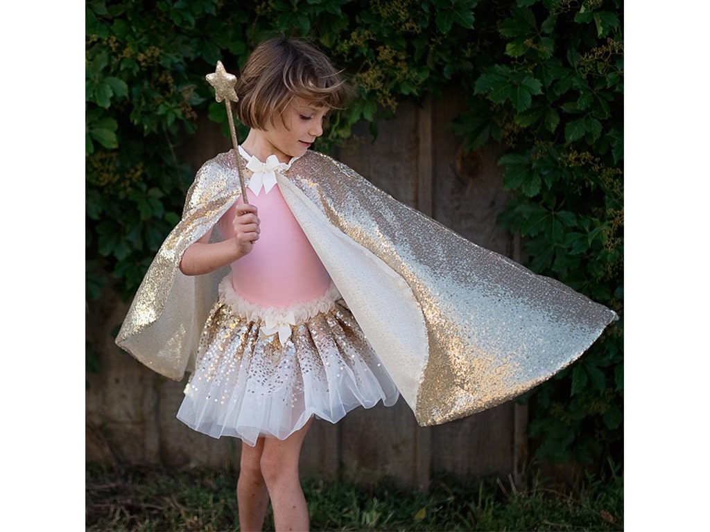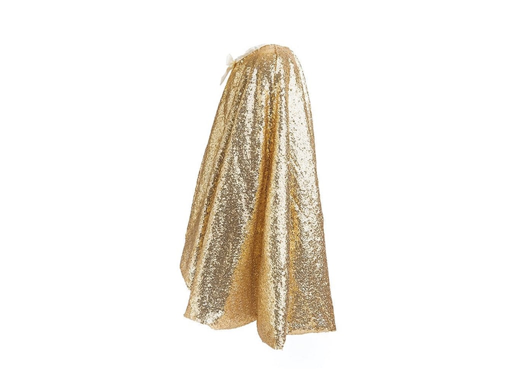 Λαμπερή και εντυπωσιακή, αυτή η παιδική κάπα με χρυσές παγιέτες για κάθε μεταμφίεση. Ιδανική για στολές πριγκίπισσας, μάγισσας, βασίλισσας ή σούπερ σταρ, χαρίζει εκτυφλωτική λάμψη και εντυπωσιάζει σε κάθε εμφάνιση.