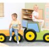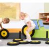 Η καρότσα μπορεί να χρησιμοποιηθεί ως κάθισμα ή επιφάνεια παιχνιδιού, ενώ οι τροχοί της είναι αφαιρούμενοι και μπορούν να λειτουργήσουν ως επιπλέον μαξιλάρια δαπέδου, προσφέροντας μεγαλύτερη ευελιξία στο παιχνίδι και τη διαμόρφωση του χώρου.