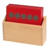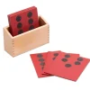 Κάρτες αρίθμησης σε κάθε μια απεικονίζεται με μεγάλες κουκκίδες η αντίστοιχη ποσότητα. Τα παιδιά μετρούν τις κουκκίδες με την αφή και έτσι η μετάβαση από το μέτρημα στον υπολογισμό με αριθμούς γίνεται ευκολότερη. Περιέχει 10 ξύλινες κάρτες σε ξύλινο κουτί.