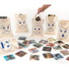 Οι 6 τσάντες από 100% φυσικό βαμβάκι είναι ανθεκτικές και εύχρηστες, ενώ οι κάρτες είναι κατασκευασμένες από πιστοποιημένο χαρτί FSC, εξασφαλίζοντας ποιότητα και ασφάλεια. Το παιχνίδι ενισχύει τη συναισθηματική νοημοσύνη, την επικοινωνία και τη γλωσσική ανάπτυξη, ενώ παράλληλα προάγει την ενσυναίσθηση και τη συνεργασία.