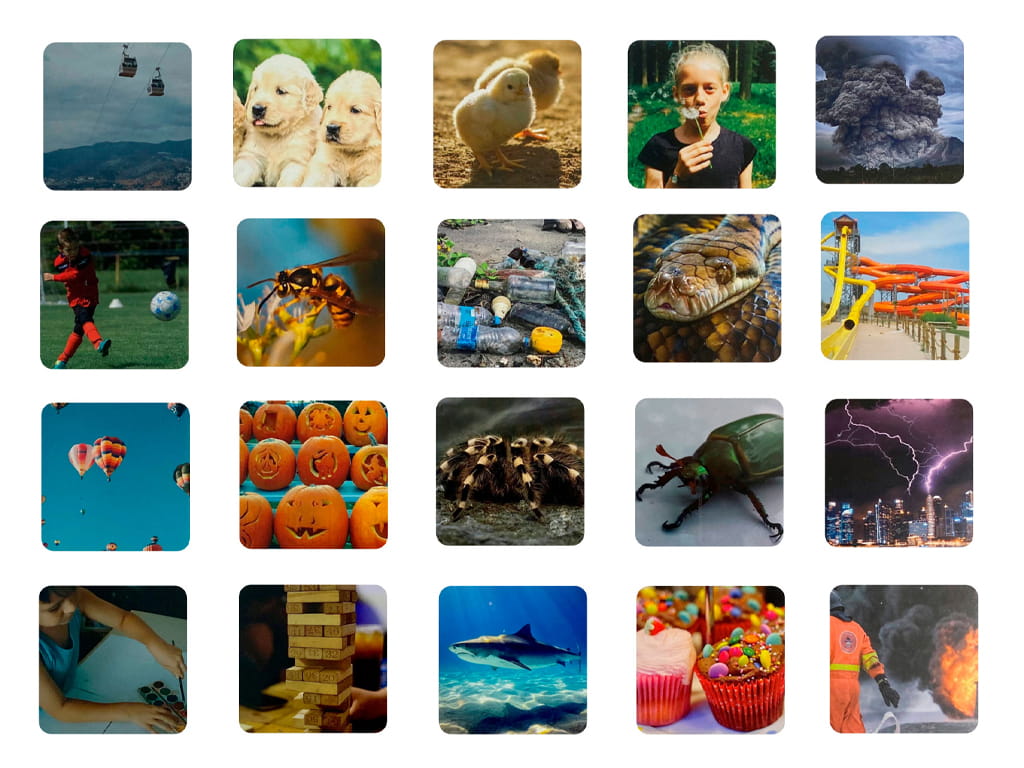 Οι κάρτες χωρίζονται σε τρεις κατηγορίες όπως εκφράσεις προσώπου από διαφορετικές κουλτούρες, καταστάσεις της καθημερινής ζωής και εικόνες με αντικείμενα ή ζώα, που προκαλούν διαφορετικά συναισθήματα. Τα παιδιά καλούνται να αναγνωρίσουν το συναίσθημα και να το αντιστοιχίσουν στη σωστή τσάντα, όπως χαρά, λύπη, έκπληξη, ανησυχία, θυμό και στεναχώρια.