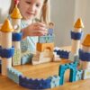 Μέσα από αυτό το εντυπωσιακό ξύλινο σετ τουβλάκια, τα παιδιά έχουν την ευκαιρία να δημιουργήσουν το δικό τους μεσαιωνικό κάστρο, ζωντανεύοντας έναν ολόκληρο φανταστικό κόσμο με πύργους, πολεμίστρες και ιππότες.