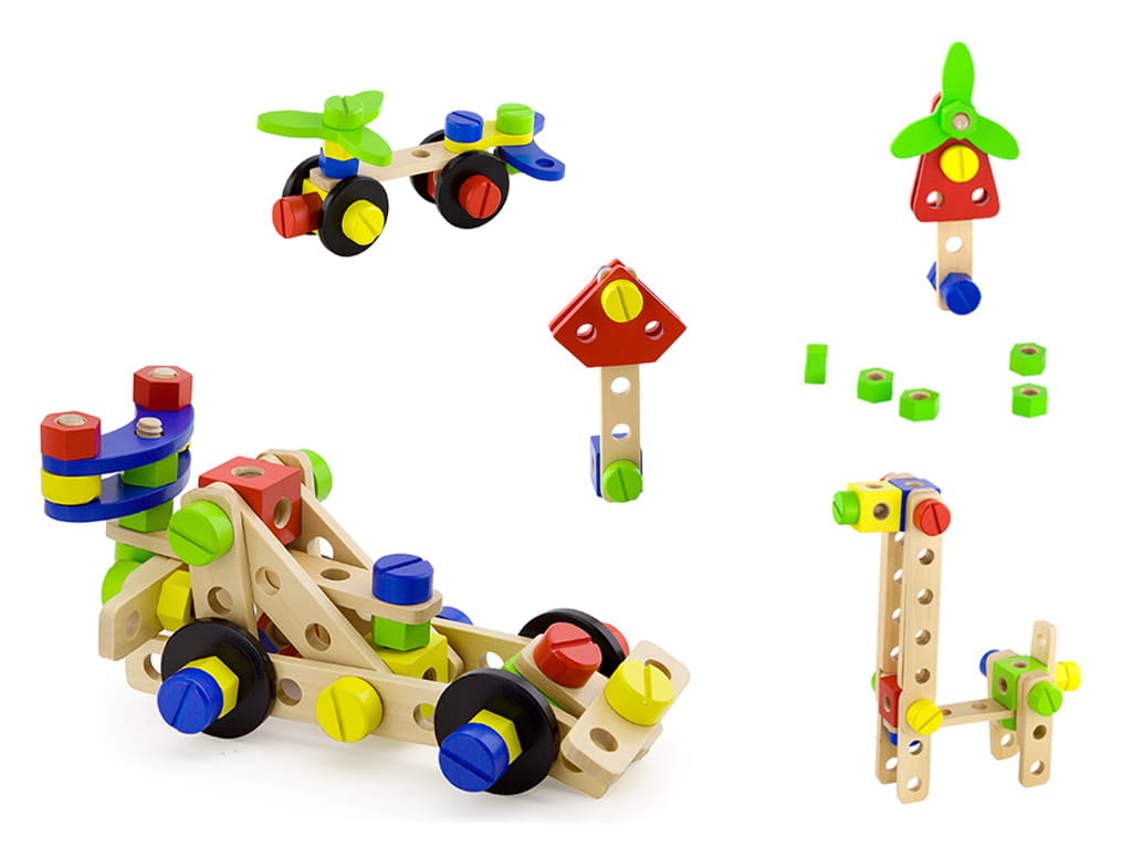 Το σετ κατασκευές construction blocks αποτελούν ένα διαχρονικό και εκπαιδευτικό παιχνίδι που προσφέρει χρόνια δημιουργικής διασκέδασης. Το σετ περιλαμβάνει 68 κομμάτια, συμπεριλαμβανομένων βιδών, παξιμαδιών και τροχών, με τα οποία τα παιδιά μπορούν να κατασκευάσουν αεροπλάνα, ρομπότ, αυτοκίνητα και πολλές άλλες τρισδιάστατες δημιουργίες.
