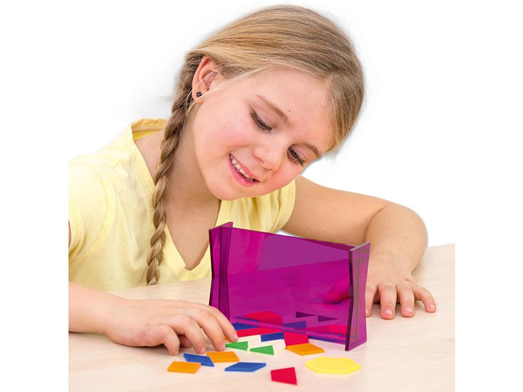 Με αυτόν τον τρόπο, οι μαθητές μπορούν να αντιγράψουν εύκολα σχήματα, να συμπληρώσουν τετραγωνικά μοτίβα και να πραγματοποιήσουν πλήθος γεωμετρικών πειραμάτων. Ο καθρέφτης αντανάκλασης ενισχύει τη χωρική και λογική σκέψη και βοηθά τα παιδιά να κατανοήσουν καλύτερα τις έννοιες της αντανάκλασης και της συμμετρίας.