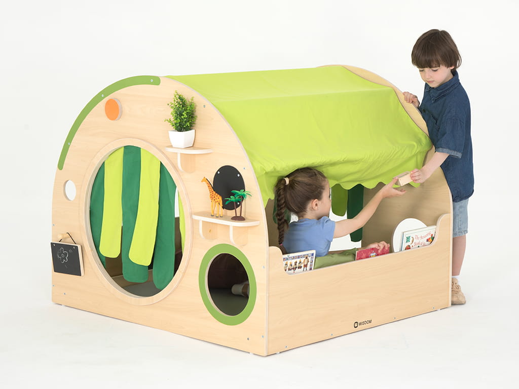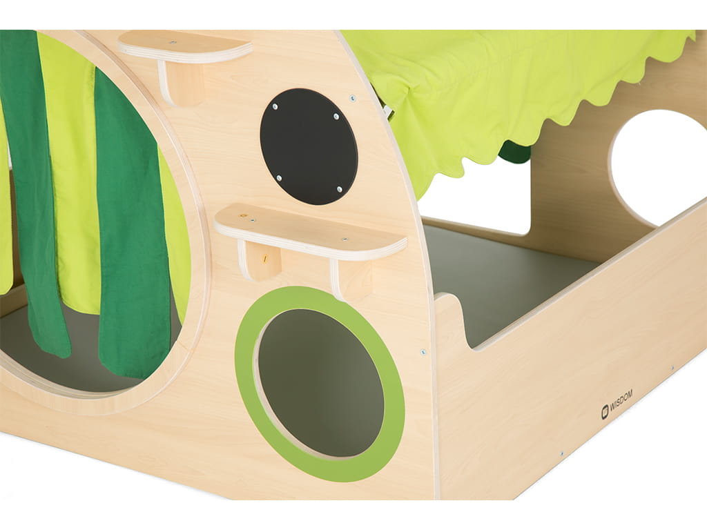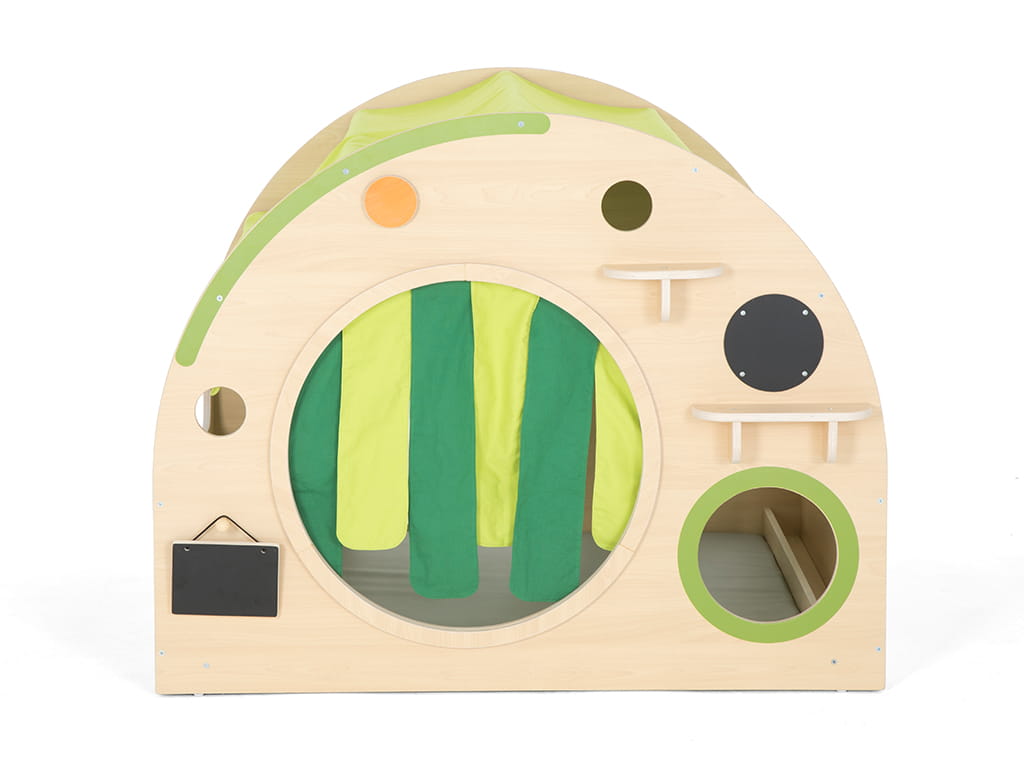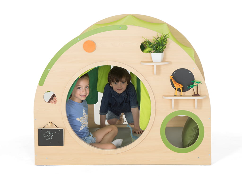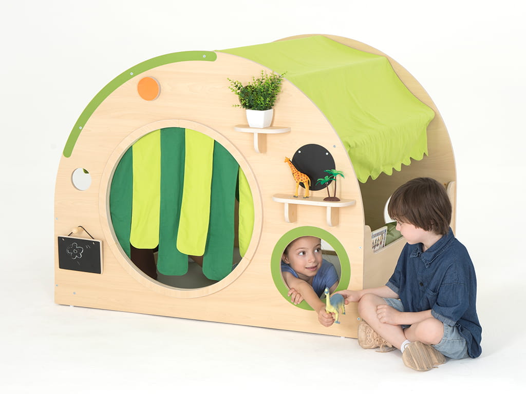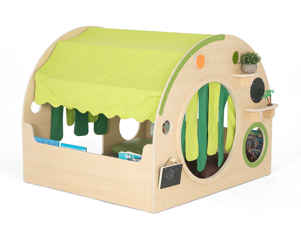 Μπορεί να μετατραπεί σε μια μυστική κρυψώνα, μια ήσυχη γωνιά ανάγνωσης ή έναν χώρο φανταστικών περιπετειών, προσφέροντας αμέτρητες δυνατότητες παιχνιδιού. Τα ανθεκτικά ξύλινα στοιχεία σε όψη σφένδαμου συνδυάζονται με χρωματιστά υφασμάτινα πάνελ και μαλακά μαξιλάρια, δημιουργώντας έναν φιλόξενο και ασφαλή χώρο για τα παιδιά.