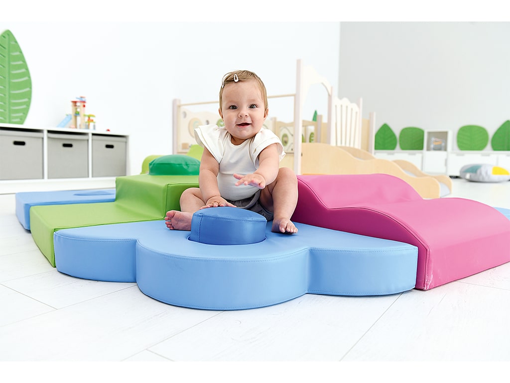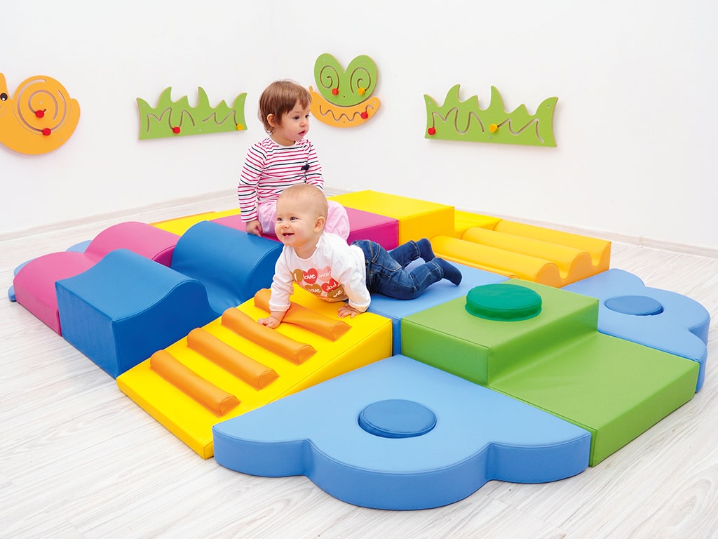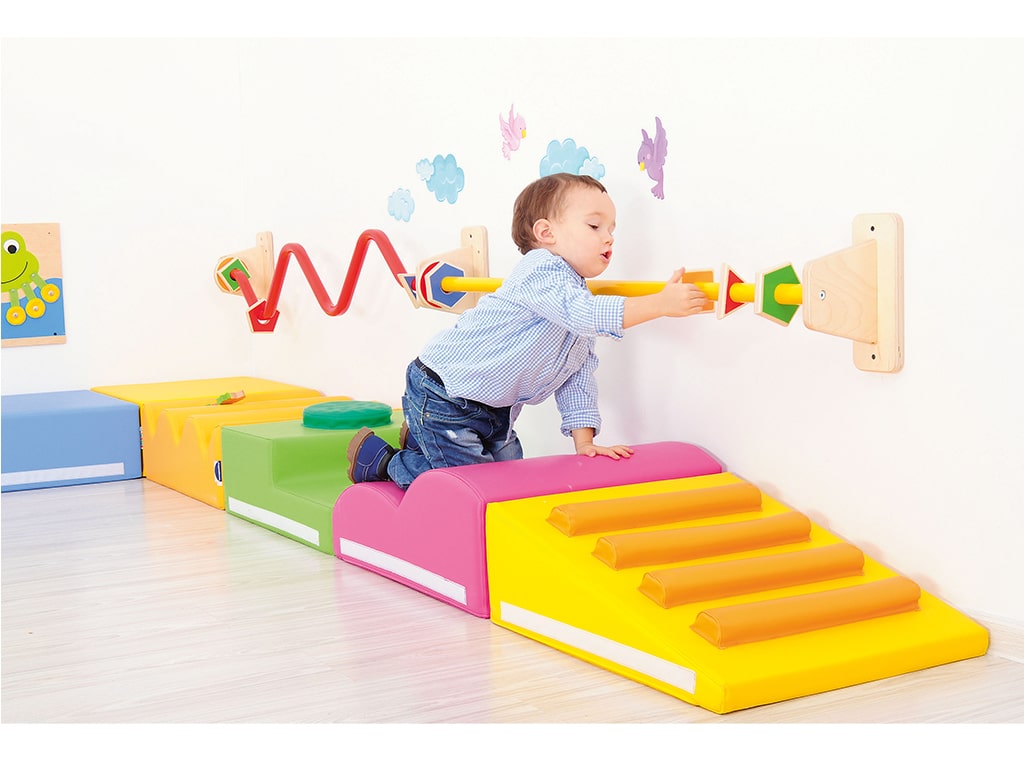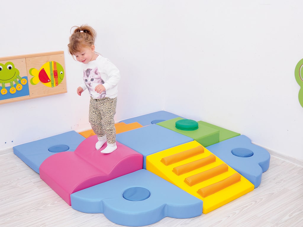 Κέντρο ψυχοκινητικής από αφρώδες υλικό με επένδυση δερματίνης που διατηρείται εύκολα καθαρή. Τα διαφορετικά κομμάτια, δημιουργούν μια διαδρομή με εμπόδια για τα νήπια που αρχίζουν να ασκούνται και αναπτύσσουν τον κινητικό τους συντονισμό. Τα κομμάτια συνδέονται μεταξύ τους με βέλκρο. Μπορούν να χρησιμοποιηθούν και μεονωμένα. Το σετ περιλαμβάνει: Kύβο, 50 x 50 x 20 εκ. Τετράγωνο στρώμα με διαφορετική υφή στο κέντρο χ 2 τεμ. 60 x 60 x 10 εκ. Γωνιακό στρώμα με διαφορετική υφή στο κέντρο χ 2 τεμ. 60 x 60 x 10 εκ. Αισθητήρια σκάλα χ 3 τεμ. (διαφορετικά σχέδια) 60 x 50 x 20 εκ. Ζιγκ-ζαγκ, 60 x 50 x 20 εκ.