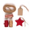 Κιτ στολισμού δώρου christmas φτιάξτε το δικό σας στολισμό. Περιέχει: 2 τσόχες αστεράκια σε κόκκινο χρώμα, 6 ετικέτες δώρου από χαρτόνι, 2 κορδέλες rafia 5 μ. (κόκκινη, φυσική), 1 κορδέλες πλεξούδα σε φυσικό χρώμα 2 μ. και 1 κορδέλα καρό κόκκινη 2 μ.