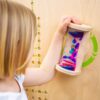 Η κλεψύδρα τραβάει την προσοχή των παιδιών με τα χρωματιστά υγρά της και τα βοηθά να συγκεντρωθούν και να ηρεμήσουν καθώς παρακολουθούν τις κινήσεις των χρωμάτων.