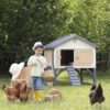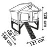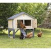 Κοτέτσι υπεριψωμένο με σταθερή και ανθεκτική δομή από πλαστικό μεγάλης αντοχής με προστασία UV. Είναι εξοπλισμένο με 4 μεγάλες πόρτες, ράμπα πρόσβασης για τις κότες, ρυθμιζόμενο εξαερισμό, μεγάλο κουτί κλώσσας, λούκι νερού καθώς και δοχείο συλλογής του νερού της βροχής. Καθαρίζεται εύκολα. Μπορείτε επίσης να το μετακινήσετε πολύ εύκολα ή να το στερεώσετε στο έδαφος. Στο εσωτερικό του μπορούν να φιλοξενηθούν 5 κότες. Βάρος: 25 kg. Διαστάσεις: 128 Χ 121 Χ 159 εκ. Ηλικία: 2 ετών και άνω.