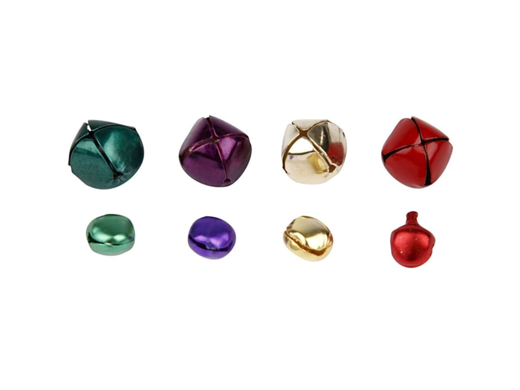Μικρά σιδερένια κουδουνάκια σε 4 διαφορετικά χρώματα, ιδανικά για χειροτεχνίες, στολισμούς και γιορτινές δημιουργίες. Το σετ περιλαμβάνει κουδουνάκια μεγέθους περίπου 1 έως 1,4 εκ., σε αποχρώσεις μεταλλικού πράσινου, μωβ, χρυσού και κόκκινου.