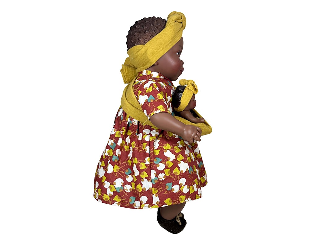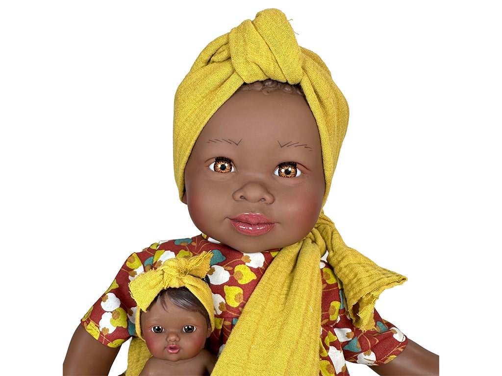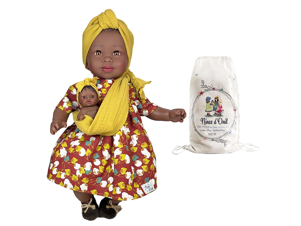 Η κούκλα που κρατά στην αγκαλιά της ένα μικρό μωράκι μέσα σε μάρσιπο, ιδανική για παιχνίδια ρόλων και φροντίδας. Η μεγάλη κούκλα έχει ύψος 40 εκ. και διαθέτει κεφάλι, χέρια και πόδια από βινύλιο, προσφέροντας ρεαλιστική υφή και ευχάριστο κράτημα. Το μωράκι έχει ύψος 10 εκ. και τοποθετείται εύκολα στον αποσπώμενο μάρσιπο, ενισχύοντας τη δημιουργικότητα του παιδιού.