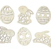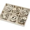 Ξύλινα διακοσμητικά αυγουλάκια και κουνελάκια σκαλιστά σε 6 διαφορετικά σχέδια 4 από το κάθε ένα. Τεμάχια 24. Ύψος: 4 εκ. Πάχος: 3 χιλ.