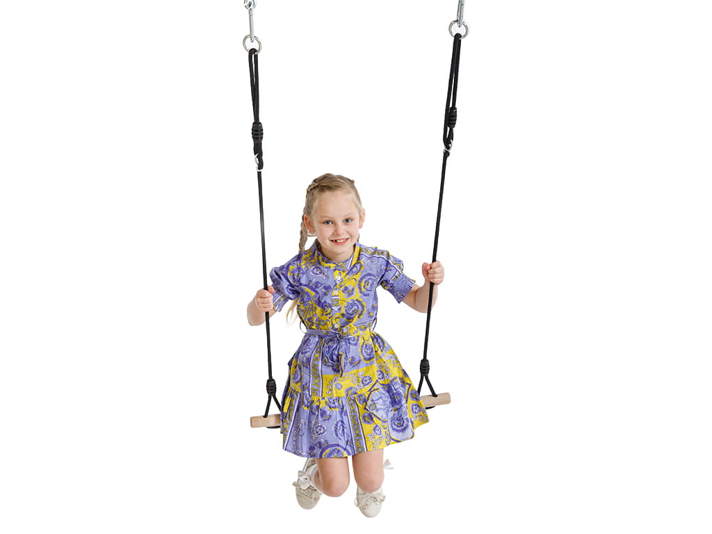 Στηρίζεται με δυνατά σχοινιά υψηλής αντοχής, εξοπλισμένα με μεταλλικούς κρίκους ανάρτησης, που εξασφαλίζουν σταθερότητα και αξιοπιστία. Το ύψος μπορεί να ρυθμιστεί εύκολα έως 120 εκ., ώστε να προσαρμόζεται σε διαφορετικούς σκελετούς κούνιας και ανάγκες χρηστών.