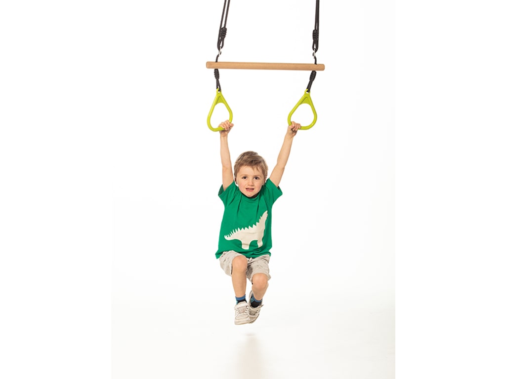 Η μπάρα και οι κρίκοι είναι κατάλληλοι για παιχνίδι, αιώρηση ή ήπια άσκηση, ενώ η πιστοποίηση EN71 εξασφαλίζει ότι πληροί όλα τα ευρωπαϊκά πρότυπα ασφάλειας για παιχνίδια.