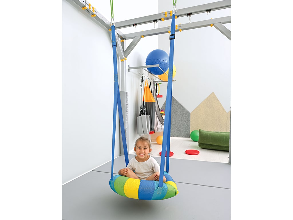 Με διάμετρο 70 εκ. και μέγιστο ύψος ανάρτησης 160 εκ., επιτρέπει ελεύθερη κίνηση μπρος – πίσω, βοηθώντας στην ενίσχυση της ισορροπίας, του συντονισμού και της αισθητηριακής επεξεργασίας. Η κούνια μπορεί να χρησιμοποιηθεί τόσο σε θεραπευτικά πλαίσια όσο και σε σχολεία, κέντρα ειδικής αγωγής ή χώρους παιχνιδιού στο σπίτι.