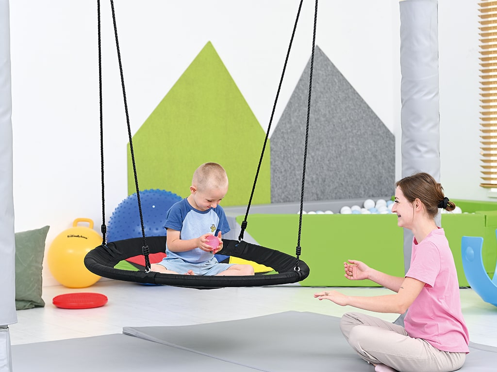 Η Κούνια στρογγυλή Net Round είναι ιδανική για παιδιά που συμμετέχουν σε θεραπεία αισθητηριακής ολοκλήρωσης, προσφέροντας ασφάλεια και άνεση κατά την άσκηση και το παιχνίδι. Χάρη στον στρογγυλό της σχεδιασμό, η πρόσβαση στο παιδί γίνεται εύκολη, κάτι που είναι ιδιαίτερα σημαντικό κατά τη διάρκεια θεραπευτικών ασκήσεων.