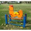 Οι βάσεις στήριξης κατασκευάζονται από δύο κατακόρυφες κοιλοδοκούς 40 x 40 χιλ. που ενώνονται μεταξύ τους με μία οριζόντια σιδηροσωλήνα Φ33 χιλ. Στο άνω μέρος τους και σε κατάλληλες οπές τοποθετούνται οι βραχίονες περιστροφής της βάσης κίνησης. Η βάση κίνησης είναι ένα μεταλλικό τελάρο από κοιλοδοκούς 20 x 30 χιλ. το οποίο έχει τη δυνατότητα ταλάντωσης σε συγκεκριμένο εύρος. Το τελάρο καλύπτεται από δύο κομμάτια κόντρα πλακέ θαλάσσης με αντιολισθητική επιφάνεια στη μία πλευρά ενώ ενδιάμεσα τους τοποθετείται κάθετα ένα διπλό κόντρα πλακέ με τη μορφή κότας. Η κοτούλα έχει προσαρμοσμένες χειρολαβές και αναβολείς από πολυπροπυλένιο σε κατάλληλες θέσεις και κάθισμα από κόντρα πλακέ θαλάσσης με αντιολισθητική επιφάνεια στη μία πλευρά.