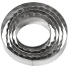 Κουπ πατ μεταλλικά για κύκλους με ίσια γραμμή και κυμματιστή. Μπορείτε να κόψετε ζύμη, πηλό, πλαστελίνη κ.λπ. Επίσης μπορείτε να τα χρησιμοποιήσετε σαν στένσιλ για να ζωγραφίσετε ή να κόψετε διάφορα υλικά όπως χαρτόνια, υφάσματα κ.α. και σαν περίγραμμα για να δώσετε σχήμα σε σύρμα πίπας ή απλό σύρμα κ.α. Τεμάχια 5. Διάμετρος μεγαλύτερου: 8 εκ.