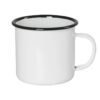 Κούπα εμαγιέ ιδανική για διακόσμηση με στυλό πορσελάνης. Από 3 στρώσεις λευκού σμάλτου σε μέταλλο και μαύρο χείλος. Άγευστο, άοσμο, ανθεκτικό στο κόψιμο και στις γρατσουνιές, πυρίμαχο, ανθεκτικό στη διάβρωση, για ζεστά και κρύα ροφήματα. Διάμετρος: 9 εκ. Ύψος: 8 εκ.