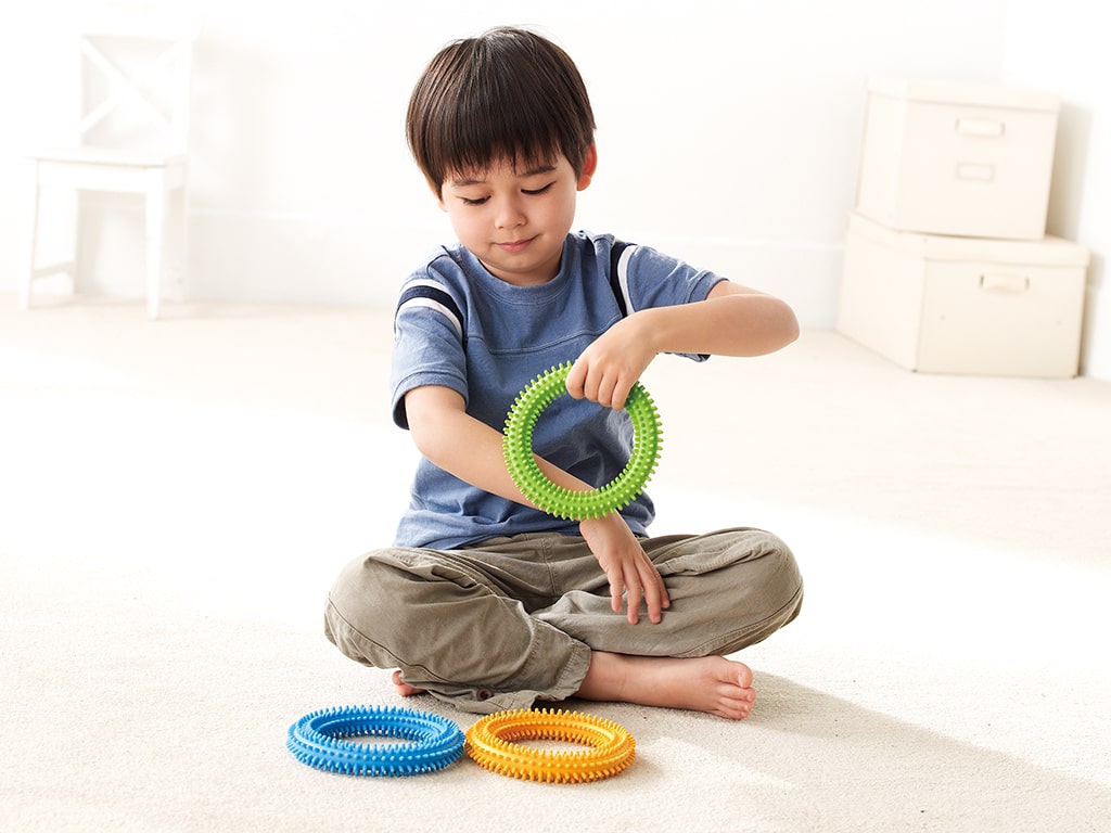 Οι sensory κρίκοι είναι ένα πολυλειτουργικό εργαλείο αισθητηριακής και κινητικής ενδυνάμωσης, σχεδιασμένο για να παρέχει απτική διέγερση, βελτίωση της κυκλοφορίας και ενίσχυση της ευλυγισίας των καρπών. Κάθε σετ περιλαμβάνει 3 κρίκους διαφορετικής αντίστασης (κίτρινο, πράσινο και μπλε), που επιτρέπουν προοδευτική εκγύμναση με ποικιλία ασκήσεων όπως στρίψιμο, πίεση και κράτημα.