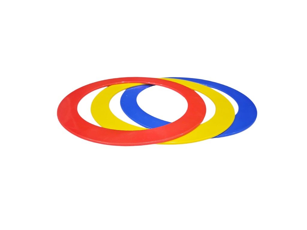 Ανακαλύψτε το Σετ Κρίκων Ρίψεων Flat σε τρία ζωντανά χρώματα: κόκκινο, μπλε και κίτρινο. Οι κρίκοι αυτοί είναι ιδανικοί για παιχνίδια ρίψεων, ψυχοκινητική εκπαίδευση και δραστηριότητες που ενισχύουν τον συντονισμό ματιού-χεριού.
