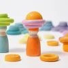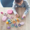 Πολύχρωμοι ξύλινοι κρίκοι ταξινόμησης σε 12 πάστελ χρώματα ουράνιου τόξου. Τα παιδιά μπορούν να τους στοιβάξουν ισορροπώντας το ένα μέγεθος πάνω στο άλλο και έτσι να βελτιώσουν τον συντονισμό ματιού-χεριού και τη λεπτή κινητικότητα τους. Επίσης μπορούν να τους ταξινομήσουν ανά χρώμα ή να τους μετρήσουν. Κατάλληλοι ακόμα και για διακόσμηση. Τεμάχια 24. Διάμετρος εσωτερικά: 12 Χ 2 & 12 Χ 3 εκ. Ηλικία: 3 και άνω.