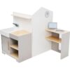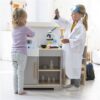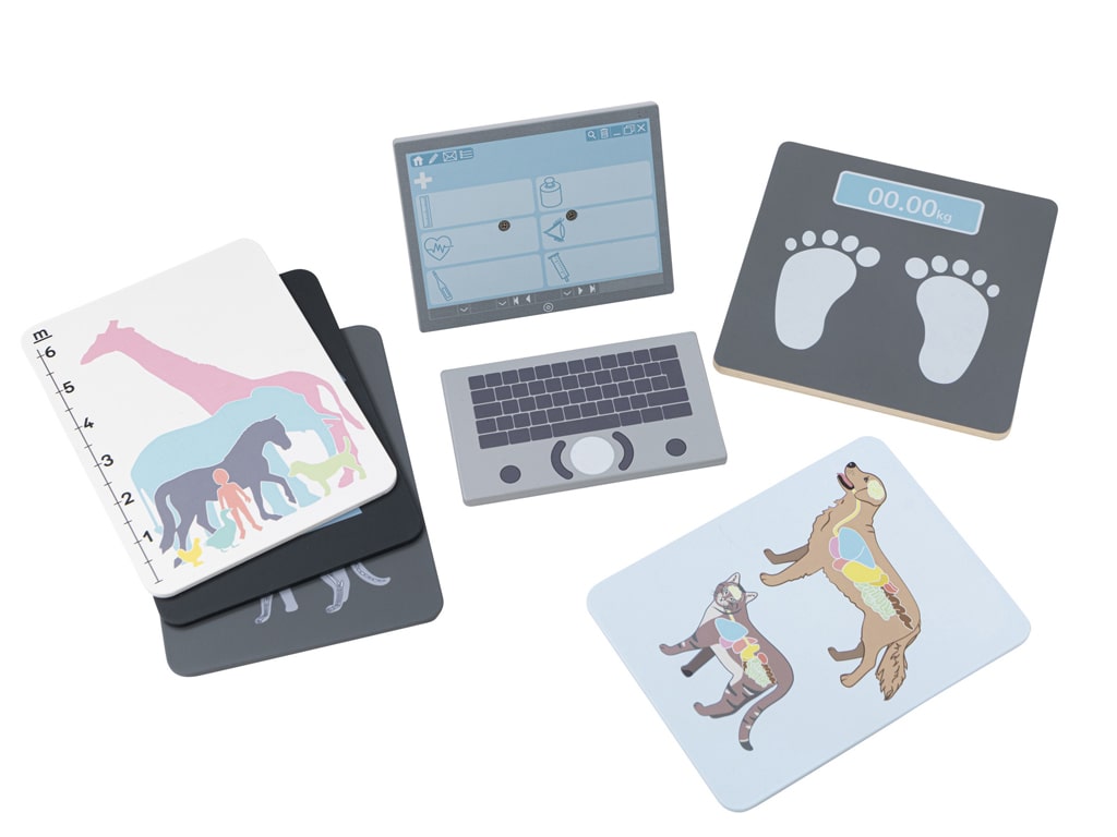 Οι διαστάσεις του Κτηνιατρικού Κέντρου είναι 100 x 105 x 94 εκ., και το βάρος του φτάνει τα 8,6 kg, εξασφαλίζοντας μια στιβαρή και σταθερή κατασκευή από υλικό MDF και πλακάζ, που προσφέρει ασφάλεια και μακροχρόνια αντοχή. Ο σχεδιασμός του είναι πρακτικός και εξαιρετικά ρεαλιστικός, με χώρους και αξεσουάρ που επιτρέπουν στα παιδιά να αναπτύξουν φαντασία και να εμπλουτίσουν τη δημιουργικότητά τους ενώ ταυτόχρονα αποκτούν γνώσεις σχετικά με την υγειονομική φροντίδα των ζώων.