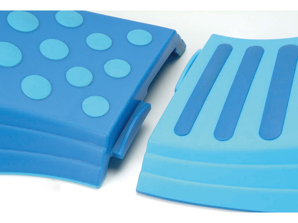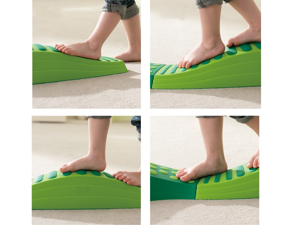 Η ανάγλυφη επιφάνεια διεγείρει τις πατούσες, ενισχύει την αίσθηση αφής και προάγει τη σωματική ανάπτυξη, ενώ ταυτόχρονα λειτουργεί και ως αντιολισθητική επιφάνεια για περισσότερη ασφάλεια. Ο σχεδιασμός με ανηφόρες και κατηφόρες προσφέρει συνεχή πρόκληση, καλλιεργώντας την ισορροπία, τον συντονισμό και τη δύναμη των κάτω άκρων.