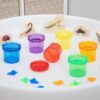 Κυπελάκια ημιδιάφανα σε 6 διαφορετικά χρώματα (κόκκινο, κίτρινο, πράσινο, μπλέ, μωβ και πορτοκαλί), ιδανικά για ταξινόμηση και παρατήρηση. Το καπάκι τους έχει κοίλο σχήμα που το μετατρέπει σε μεγεθυντικό φακό 3x και ο πάτος έχει πλέγμα μέτρησης.