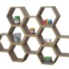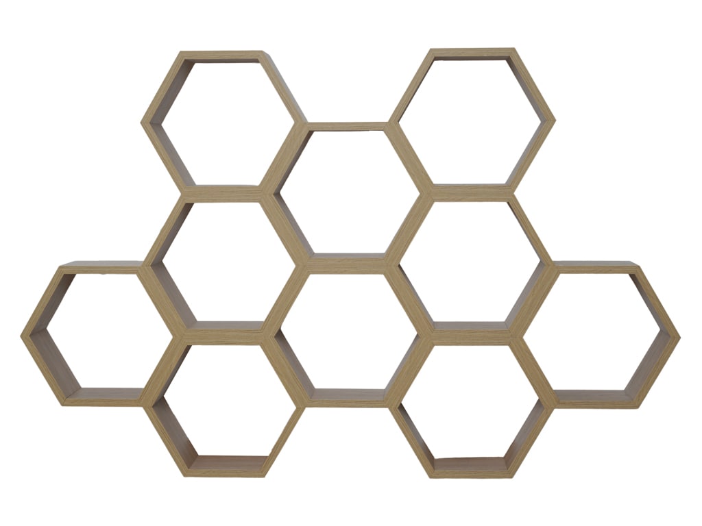Αποτελείται από 10 εξαγωνικές κυψέλες, οι οποίες, σε συνδυασμό, σχηματίζουν 15 λειτουργικά ράφια, ιδανικά για την τακτοποίηση βιβλίων, υλικών ή παιχνιδιών. Η γεωμετρική διάταξη της κατασκευής προσφέρει σταθερότητα, ευκολία πρόσβασης και ενθαρρύνει την οπτική ταξινόμηση των αντικειμένων.