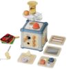 Το συνοδευτικό εικονογραφημένο βιβλιαράκι με θέμα “Φρούτα & Λαχανικά” εισάγει τα παιδιά σε διαφορετικά είδη φρούτων και λαχανικών, μαζί με τα αγγλικά ονόματά τους. Είτε πρόκειται για τσουλήθρα για μπαλάκια, καθρέφτη, παιχνίδι με χάντρες, ταξινόμηση καρότων ή σχημάτων, τοποθέτηση σκουληκιών, εισαγωγή κερμάτων, περιστροφή τροχών, τράβηγμα κορδονιού ή προώθηση διαφορετικών σχημάτων και μπαλών μέσα από λαστιχένιες λωρίδες, οι γονείς μπορούν να συνδυάζουν τις αποσπώμενες πλευρές του κύβου ανάλογα με τις ανάγκες του παιδιού τους.
