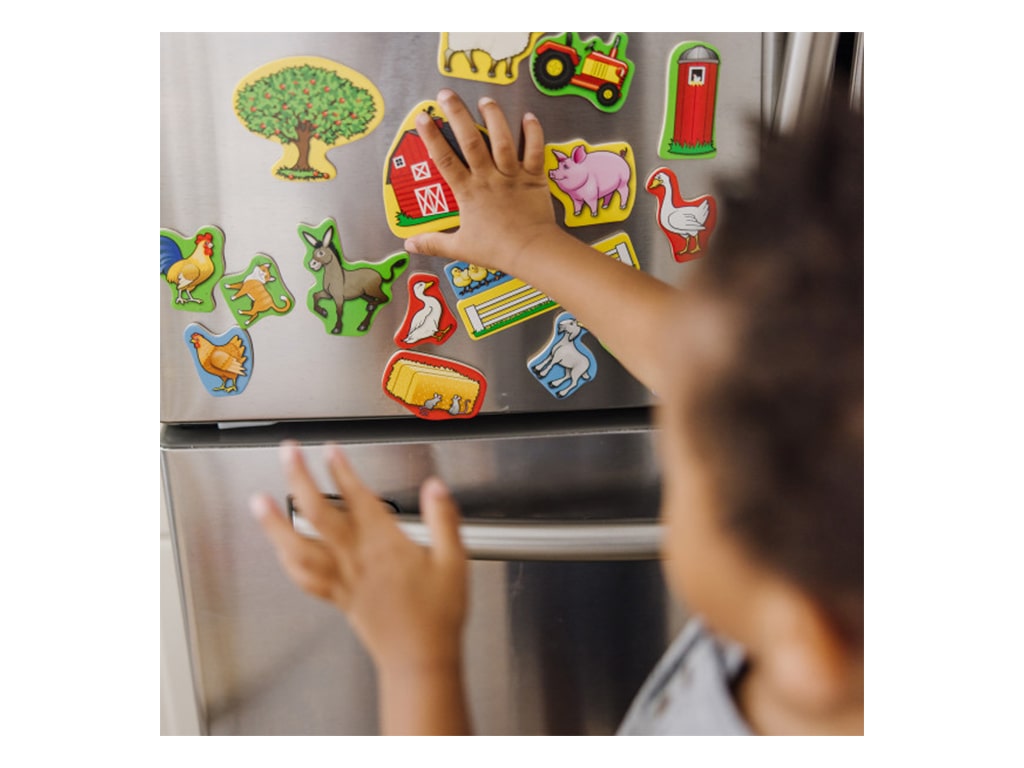20 ξύλινοι μαγνήτες προσφέρουν ατελείωτες ευκαιρίες δημιουργικού παιχνιδιού με θέμα τη φάρμα, βελτιώνοντας τον συντονισμό χεριού-ματιού και τις λεπτές κινητικές δεξιότητες. Οι μαγνήτες περιλαμβάνουν πρόβατο, κόκορα, κατσίκα, γουρούνι, δέμα σανού, αγελάδα, χήνα, αχυρώνα, τρακτέρ, μηλιά και άλλα.