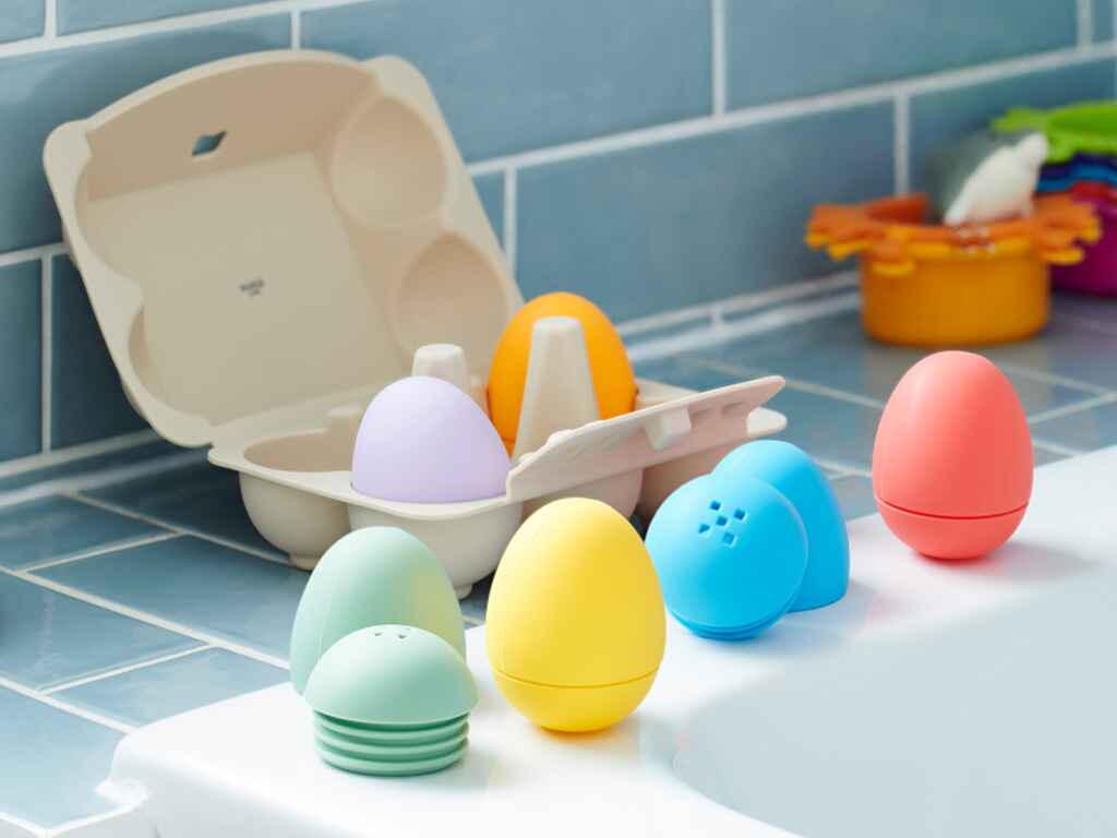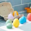 Τα αυγά μπορούν επίσης να χρησιμοποιηθούν ως διασκεδαστικά παιχνίδια νερού, ιδανικά για την ώρα του μπάνιου ή για αισθητηριακό παιχνίδι με νερό. Το σετ περιλαμβάνει ένα πρακτικό κουτί από μαλακή σιλικόνη για εύκολη αποθήκευση.