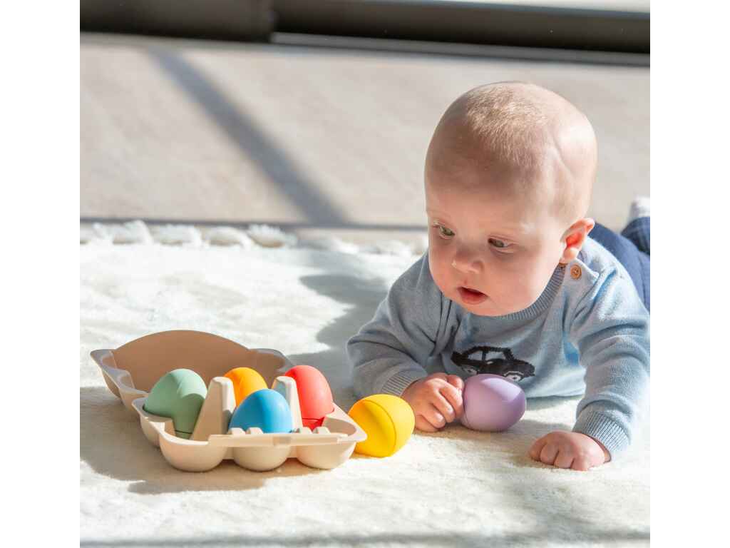 Κατασκευασμένα από ασφαλή σιλικόνη κατάλληλη για τρόφιμα, τα μαλακά αυγά Sensory ενισχύουν τη λεπτή κινητικότητα, τη δημιουργικότητα, την περιγραφική γλώσσα και την εξερεύνηση του κόσμου, ενώ είναι ιδανικά για παιδιά από 12 μηνών και άνω.