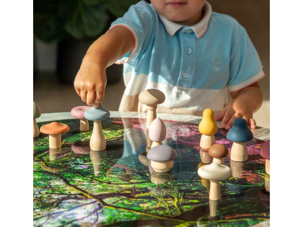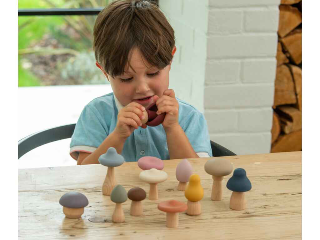 Τα Μανιτάρια Δεξιοτήτων είναι ένα υπέροχο σετ 12 τεμαχίων με διαφορετικά σχήματα μανιταριών, σχεδιασμένο για να ενισχύει τη λεπτή κινητικότητα και το δημιουργικό παιχνίδι. Κάθε μανιτάρι διαθέτει ξύλινο σώμα και αποσπώμενο καπέλο από σιλικόνη, επιτρέποντας στα παιδιά να τα ταιριάζουν όπως θέλουν, αναπτύσσοντας παράλληλα τον συντονισμό χεριού-ματιού.