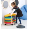 Μαξιλάρια από ανθεκτικό ύφασμα PVC, που διατηρούνται εύκολα καθαρά, γεμάτα με σφουγγάρι. 20 τεμάχια σε διαφορετικά χρώματα. Συνδιάστε τα με τις βάσεις μαξιλαριών με Κωδ. 151658 & 151659. Διάμετρος: 35 εκ. Ύψος: 3 εκ.