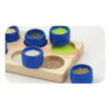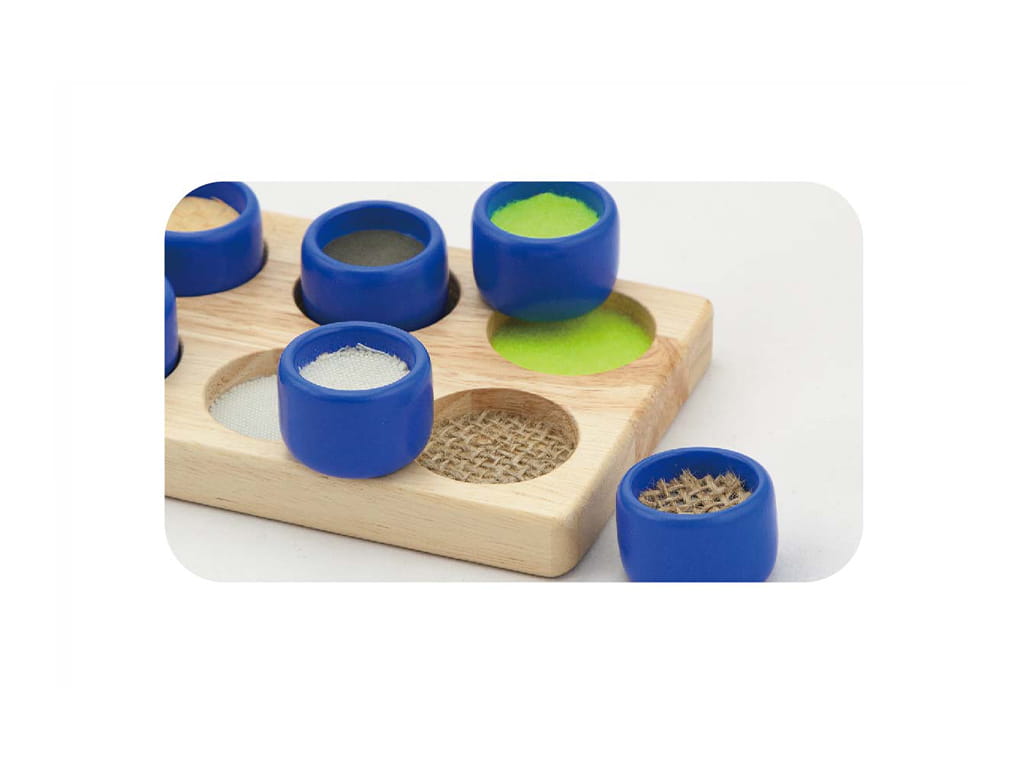 Το σετ περιλαμβάνει 10 τεμάχια με διαφορετικές υφές, τα οποία το παιδί καλείται να ταιριάξει σωστά στο ταμπλό. Μέσα από το άγγιγμα, το παιδί μαθαίνει να αναγνωρίζει και να ξεχωρίζει τις διαφορετικές επιφάνειες, ενισχύοντας τη διαφοροποιημένη αισθητηριακή αντίληψη.