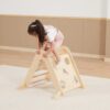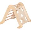 Το mini τρίγωνο αναρρίχησης προσφέρει στα παιδιά μία ευκαιρία να βελτιώσουν τις αδρές κινητικές δεξιότητες τους ενώ διασκεδάζουν. Επίσης αναπτύσσει την αίσθηση της ισορροπίας και βελτιώνει τον κινητικό συντονισμό του σώματός τους. Από τη μια πλευρά, τα παιδία θα βρουν μια κλασική σκάλα για να ανέβουν και από την άλλη, έναν τοίχο με διάφορες τρύπες αναρρίχησης. Μπορεί να συνδυαστεί με τη ξύλινη ράμπα (174202), και με το τόξο αναρρίχησης (174203).