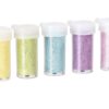 Μix glitter παστέλ σε 5 σωληνάρια χρώματα: κίτρινο, πράσινο, τυρκουάζ, βιολετί, ροζ. Βάρος: 4 γρ. το καθένα.