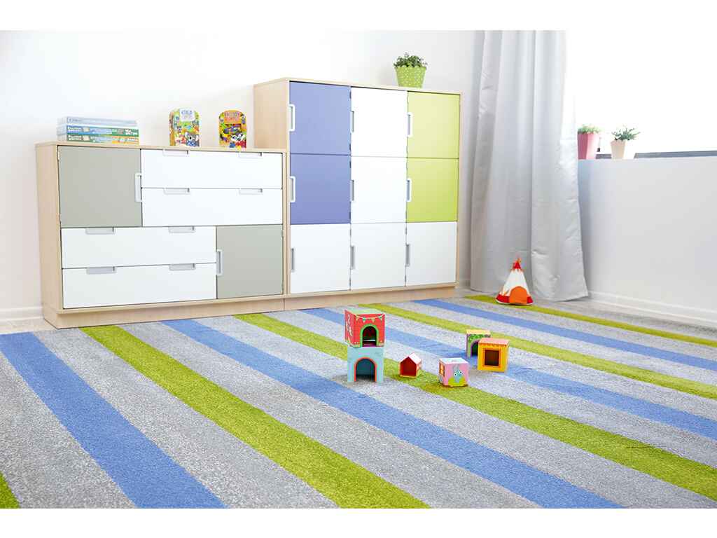 Ταιριάζει σε σύγχρονες διακοσμητικές επιλογές, προσδίδοντας ζωντάνια και χαρακτήρα σε κάθε περιβάλλον. Είναι ιδανική επιλογή για παιδικούς σταθμούς και νηπιαγωγεία, όπου η ασφάλεια, η ανθεκτικότητα και η καθαριότητα είναι πρωταρχικής σημασίας. Το σχέδιο και η ποιότητα του υλικού της την καθιστούν επίσης κατάλληλη για γραφεία ή χώρους αναμονής.